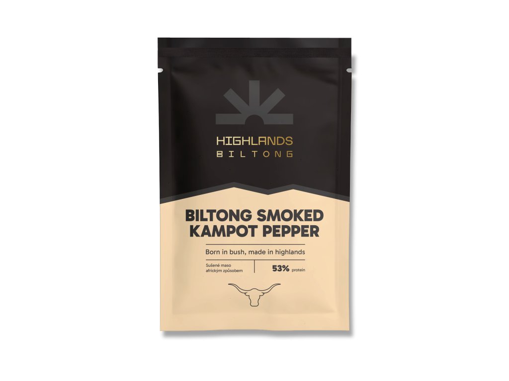 Poznejte jedinečný chuťový zážitek. Tento Biltong je pro gurmány, kteří hledají jemný kouřový nádech a prvotřídní kvalitu. Extra dávka uzeného černého Kampotského pepře vás nenechá vlažným. Tak jako dobrý steak potřebuje sůl a pepř, tak u toho biltongu to je naprosto stejné. Zaručeně chlapská záležitost. Velmi dobře jde s dobrým karibským rumem nebo doporučujeme k biltongu zakoupit jihoafrické víno, ideálně pinotage.